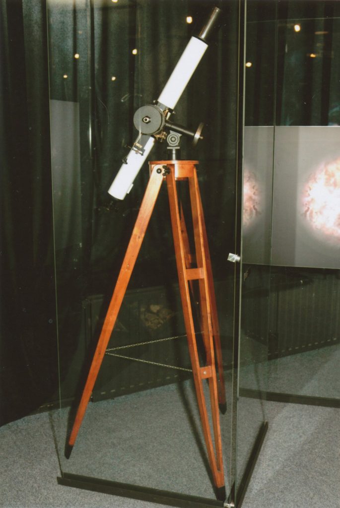 Astronomický ďalekohľad pozostávajúci zo systému šošoviek. Zväčšený obraz vzniká lomom svetla na šošovkách, čo sa nazýva refrakcia, podľa čoho je nazvaný aj typ ďalekohľadu. Prvé astronomické ďalekohľady boli refraktory. Tento refraktor bol pôvodne používaný pracovníkmi hvezdárne a pri vzniku múzea sa stal súčasťou zbierkového fondu. Ďalekohľad je upevnený na drevenej trojnožke – stojane na pripevnenie ďalekohľadu s paralaktickou montážou.