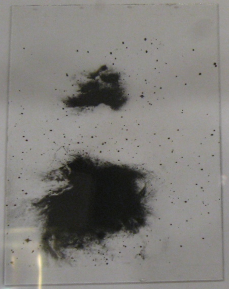 Sklená fotoplatňa s negatívnou snímkou hmloviny M42 vyhotovenou v hurbanovskej hvezdárni v prvej štvrtine 20. storočia.