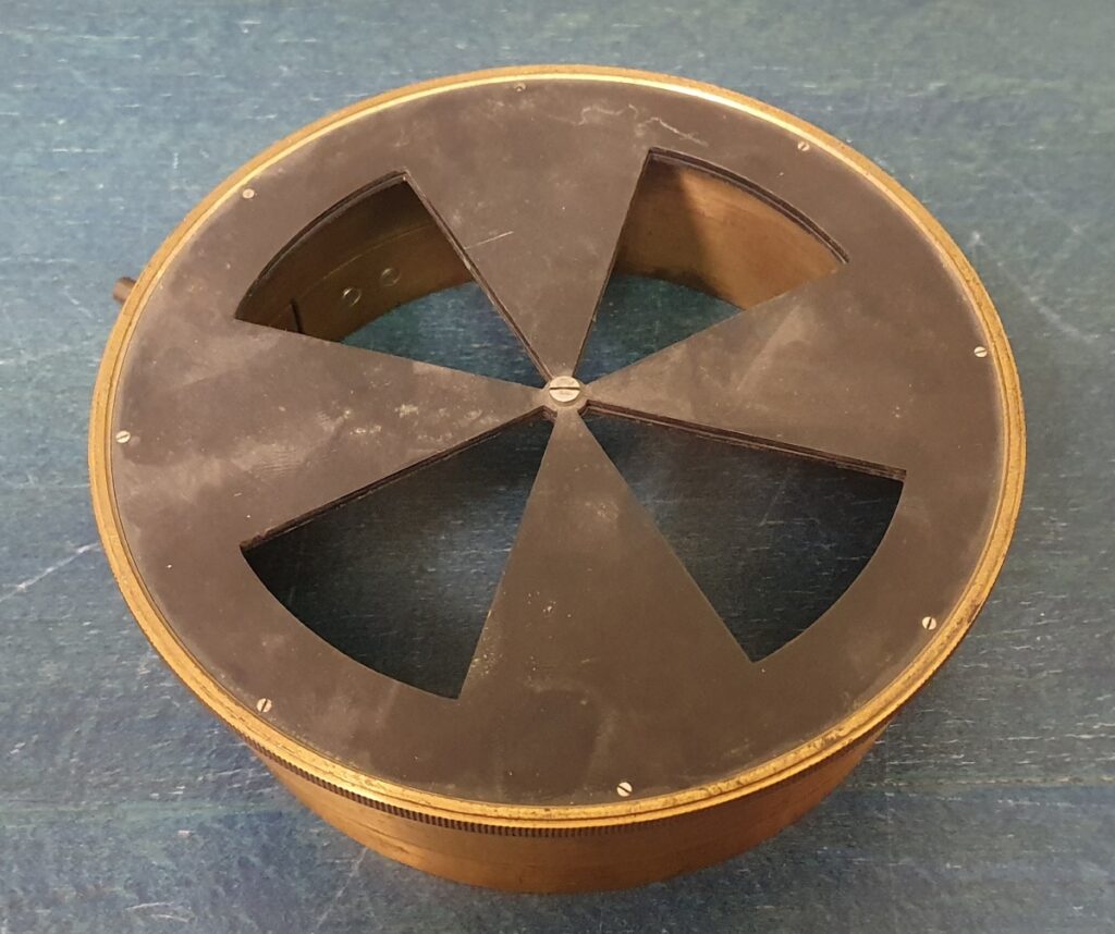 Štrbina s nastaviteľnými výrezmi na regulovanie svetla dopadajúceho na objektív ďalekohľadu. Štrbina sa pripevní na horný koniec tubusu ďalekohľadu. Predmet pochádza z pozostalosti zakladateľa hvezdárne Mikuláša Thegeho Konkolyho.